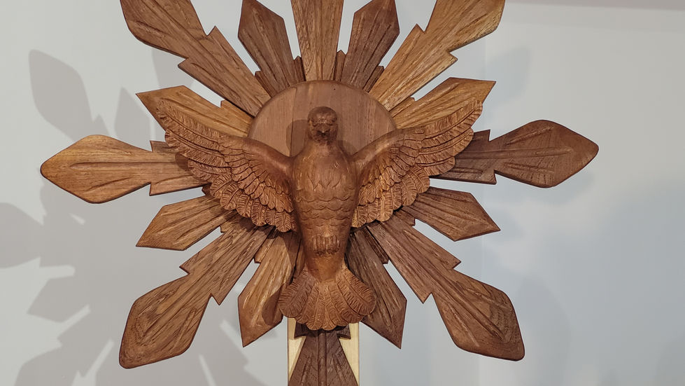 Espírito Santo em madeira com o pombo apenas em cor natural e aplicação de ouro nos raios